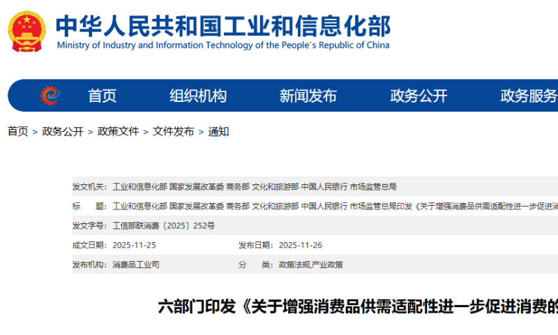 近日,工信部、发改委等六部门印发《关于增强消费品供需适配性进一步促进消费的实...