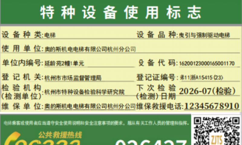 新版电梯使用标志3月1日正式启用