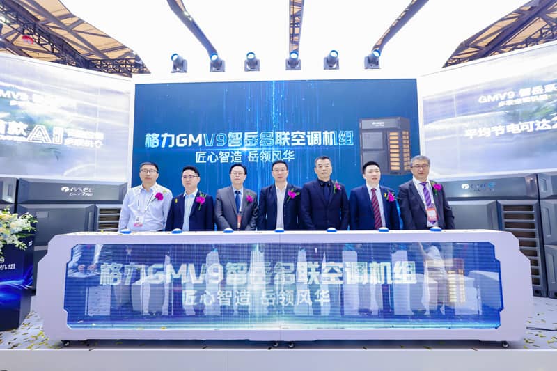 4月27日,格力在主展位举行了GMV9智岳多联空调机组新品发布活动,这是行业首款基于在线实时能效为牵引的AI节能控制多联机,平均节电可达25%。