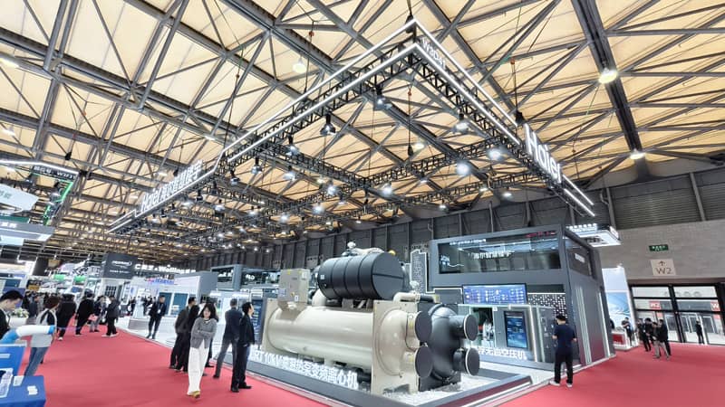 日立中央空调以“碳索适界 昱AI同行”为主题亮相展会,并针对建筑节能改造和工业低碳需求,全球首发SET FREE RIII更新系列顶出风多联机与SET FREE极昱系列两大工装新品,展现了日立在制冷空调领域的深厚技术积累。